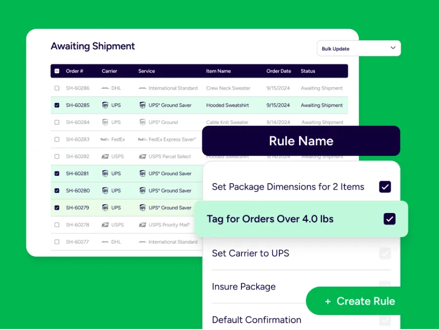 Configure consolidation logic within your existing systems—such as time windows, order value thresholds, product exclusions, service levels, and warehouse eligibility. Once your business rules are set in your OMS, ShipStation APIs execute those decisions in real time as shipments are created.