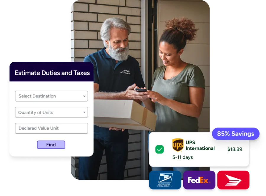 Turn complex international shipping rules into simple API calls. Cut manual work, stay compliant with customs, and give shoppers clear landed costs and tracking wherever they order from.