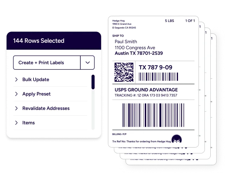 Move from paid order to printed label in fewer clicks. Import orders, shop rates, apply rules, and print in bulk. Get a cleaner workflow, fewer mistakes, and more time for the work that grows your business.