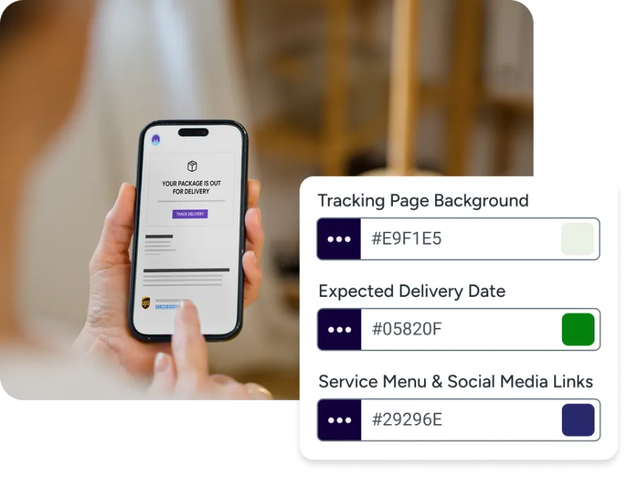 Your tracking hub should look like it belongs to your brand. Choose page templates that work on desktop and mobile, then apply your color palette to key elements like the background, expected delivery date, and service menu. On select plans, control how order details and promotional content appear so everything stays polished across devices.