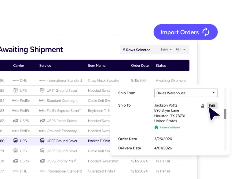 Bad addresses waste money. They also waste time. ShipStation helps you manage address imports and mailing lists at scale by centralizing orders and ship-to data from 100+ integrations like Shopify, BigCommerce, WooCommerce, Amazon, eBay, Etsy, and Walmart. If your “mailing list” lives in multiple storefronts, bring it together. Then standardize how it gets processed.