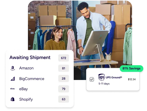 Scaling ecommerce ground shipping operations gets hard when orders live in different places. ShipStation connects with 100+ selling channels and ecommerce platforms, so orders import into one dashboard from Shopify, Amazon, eBay, Etsy, Walmart, BigCommerce, WooCommerce, and more. Add inventory management to reduce oversells, and use analytics to track carrier performance and shipping spend as volume climbs.