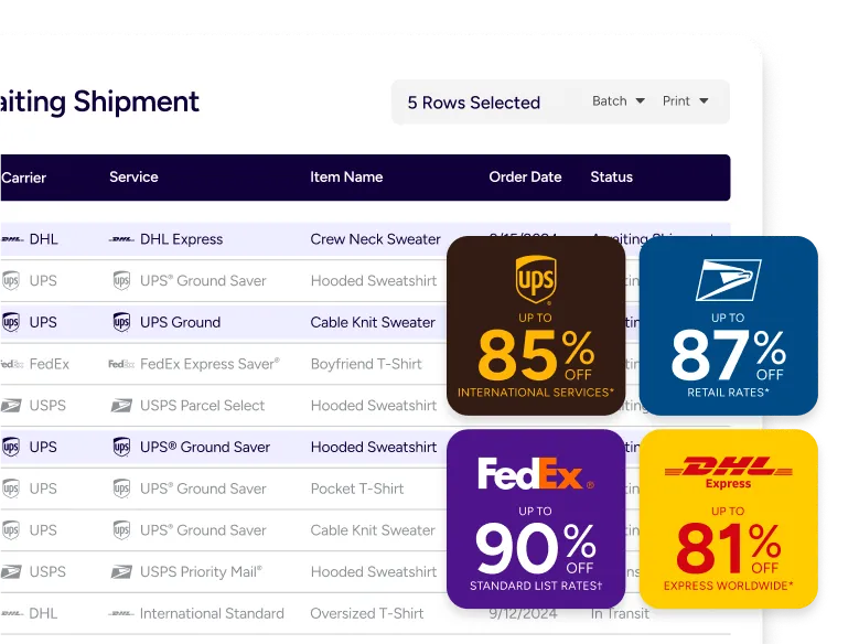 Whether you’re shipping a single order or managing high-volume ecommerce fulfillment, ShipStation’s shipping cost calculator helps you get fast, reliable quotes from top carriers so you can save time and money with every label.
