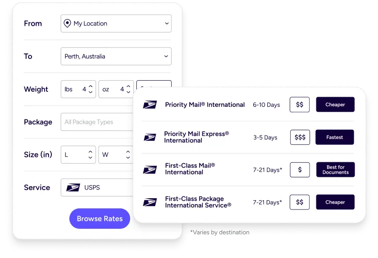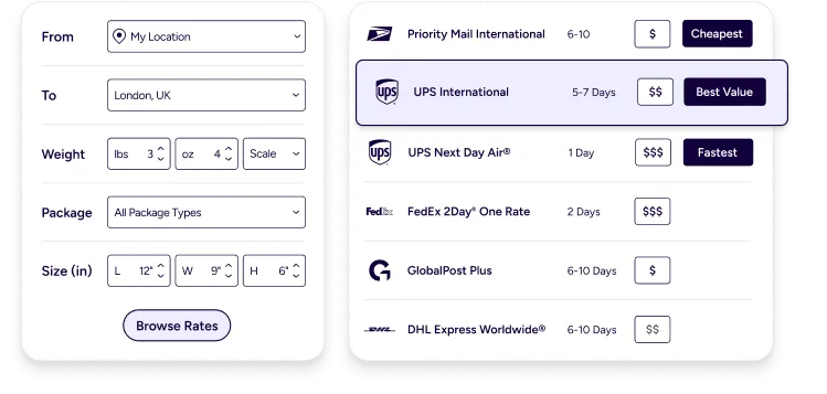No more bouncing between carrier sites and spreadsheets. Use a centralized international rate comparison dashboard to view services side by side, using your package details and destination. You’ll get the clarity you need to compare international delivery options instantly, pick the right speed, and protect margin on every order.