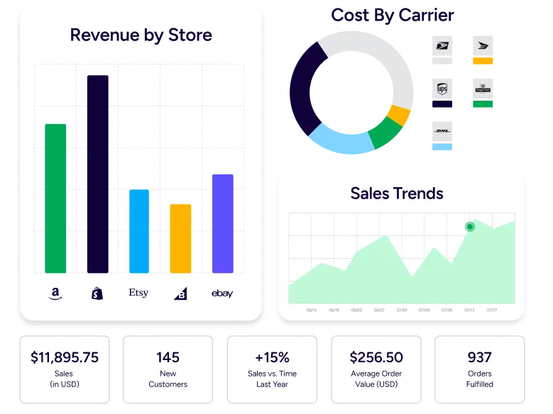 If you sell on Shopify, Amazon, eBay, Etsy, Walmart, and your own store, rate decisions can splinter fast. ShipStation centralizes shipping rate management with 100+ integrations, batch label printing, and a shipping cost visibility dashboard that rolls spend up by carrier, service, and time period. Add batch rate comparison software to your daily workflow, and your team can move faster with fewer mistakes. For quick checks, try the USPS shipping calculator, then bring that insight back into your shipping workflow.