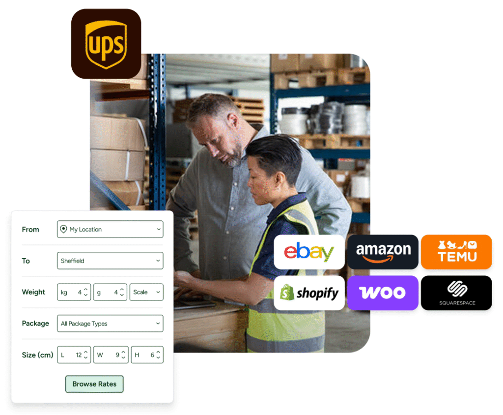 Our platform seamlessly connects to hundreds of leading online marketplaces and shopping carts like eBay, Shopify, WooCommerce, Etsy, Magento, and many more. This is alongside all major UK carriers like Royal Mail, Evri, UPS and more.