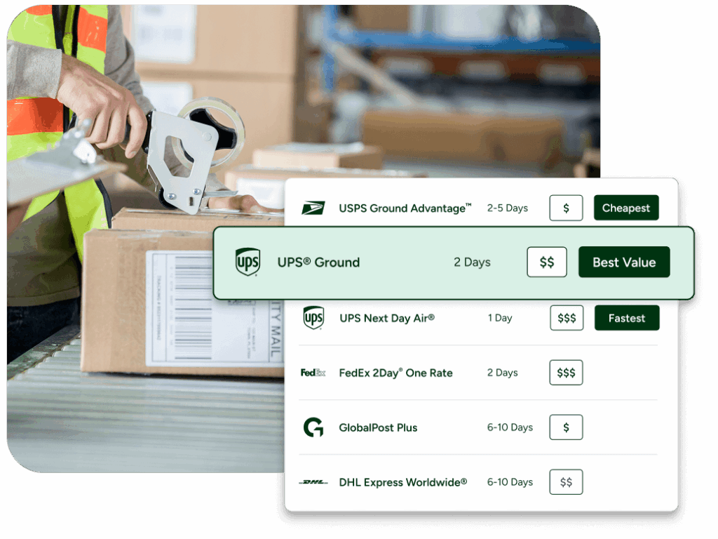 Get enterprise-scale savings with automated rate shopping across every shipment. Find the best-value, cheapest, or fastest shipping at scale so you can save big without slowing down.