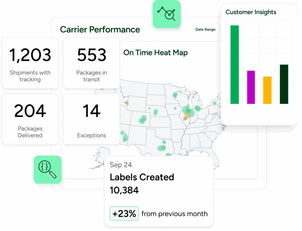 Get ahead of delays, exceptions, and lost packages before customers feel the impact. Keep tabs on every shipment and use insights to shape your growth.